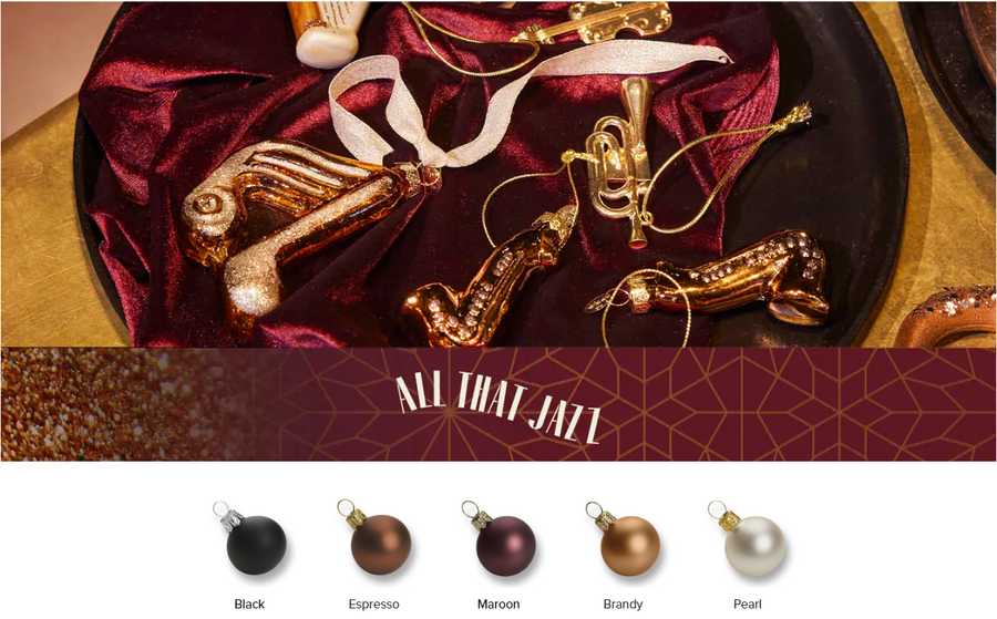 Świąteczna symfonia to kolekcja w nowoczesnym wydaniu, której źródłem inspiracji stały się pełne energii kluby jazzowe szalonych lat 20. Elegancka, ton-sur-ton paleta barw łączy w sobie głębię espresso, subtelny blask perły i ponadczasową zzerń, wzbogaconą o najnowsze akcenty – wyrafinowaną purpurę oraz delikatny, miedziany odcień brandy.
